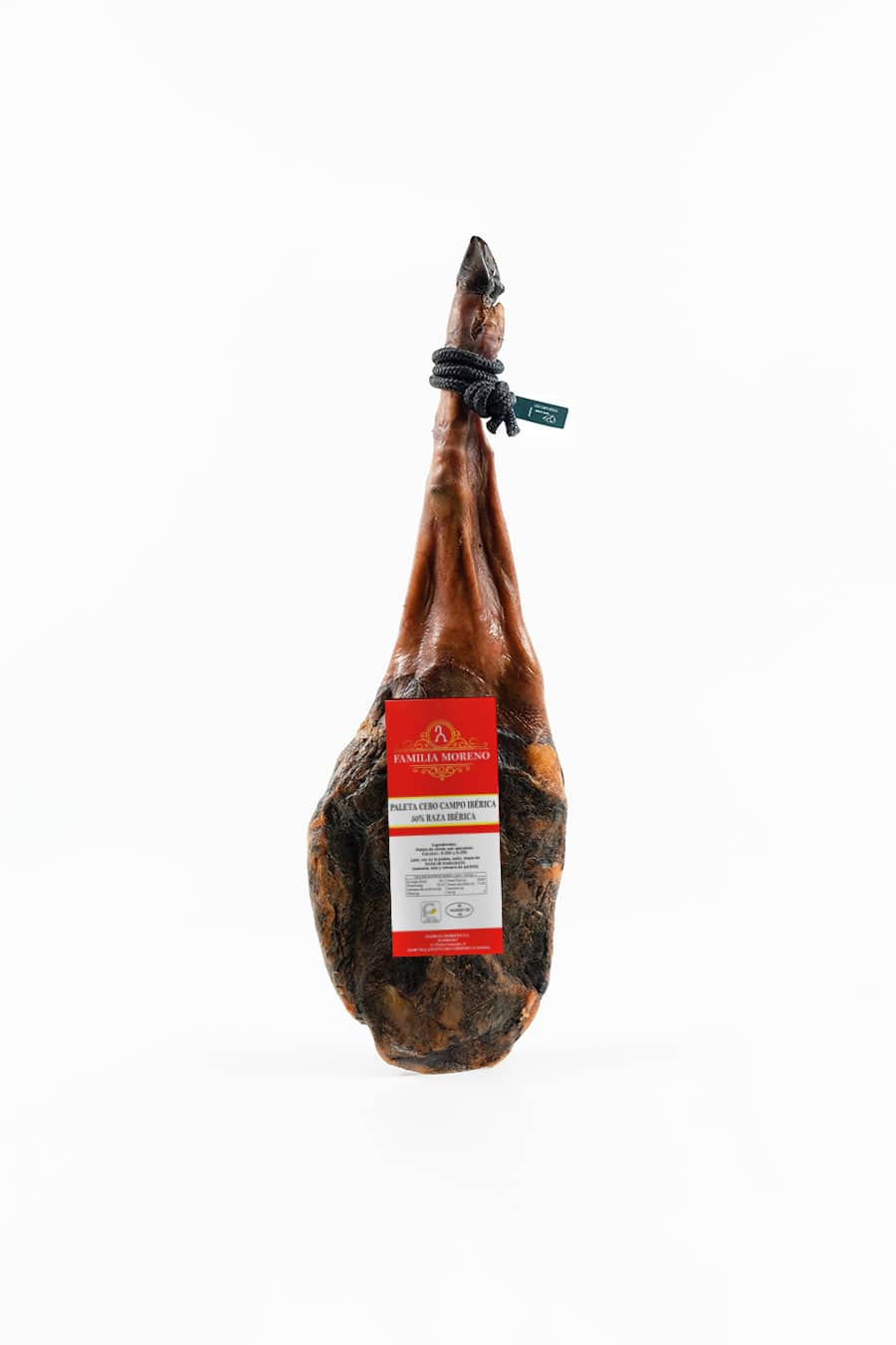 Las paletas de Familia Moreno S.L. proceden de cerdos de cebo de campo 50% raza ibérica y seleccionados de entre las mejores estirpes y “engordados” en la comarca del Valle de Los Pedroches.